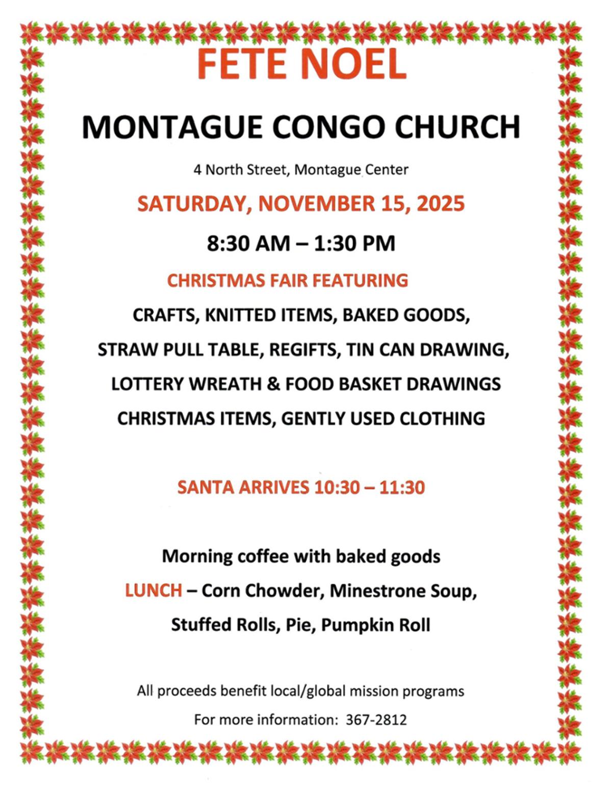 FEATURES CRAFTS, GIFTS, HOMEMADE FOOD, DRAWINGS, STRAW PULL TABLE, LOTTERY WREATH AND FOOD BASKET DRAWING, HOLIDAY DECOR AND GENTLE WORN CLOTHING.